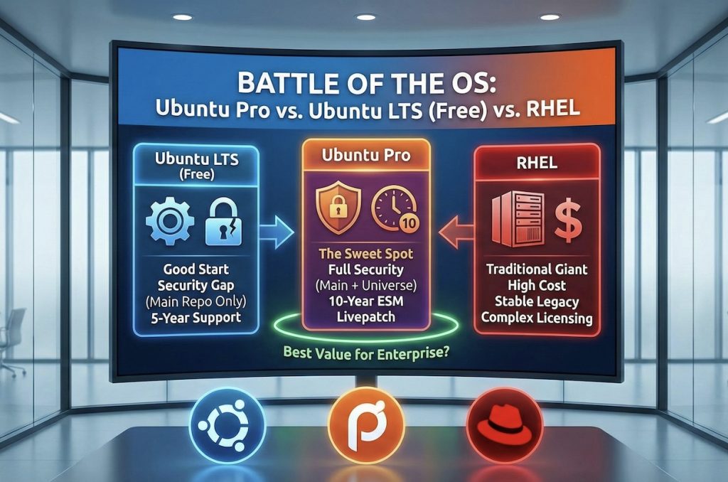 Battle of the OS: เปรียบเทียบ Ubuntu Pro vs. Ubuntu LTS (Free) vs. RHEL เลือกแบบไหนดีที่สุดสำหรับ Enterprise?